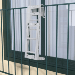 De beugel is flexibel in gebruik en kan zowel worden toegepast bij Franse balkons als bij montage aan een dakraam en/of een buitendraaiend raam, afhankelijk van de situatie. Dankzij de slimme constructie wordt het gewicht gelijkmatig verdeeld, wat trillingen vermindert en voorkomt dat de belasting op één punt terechtkomt. De open opbouw zorgt ervoor dat er voldoende lucht rondom de unit kan circuleren, wat bijdraagt aan een goede en efficiënte werking. Daarnaast is de oplossing ruimtebesparend, omdat het raam of balkon toegankelijk blijft en de unit netjes en compact wordt opgehangen. De montage kan bovendien plaatsvinden zonder te boren in de gevel of het kozijn, waardoor de woning onbeschadigd blijft.